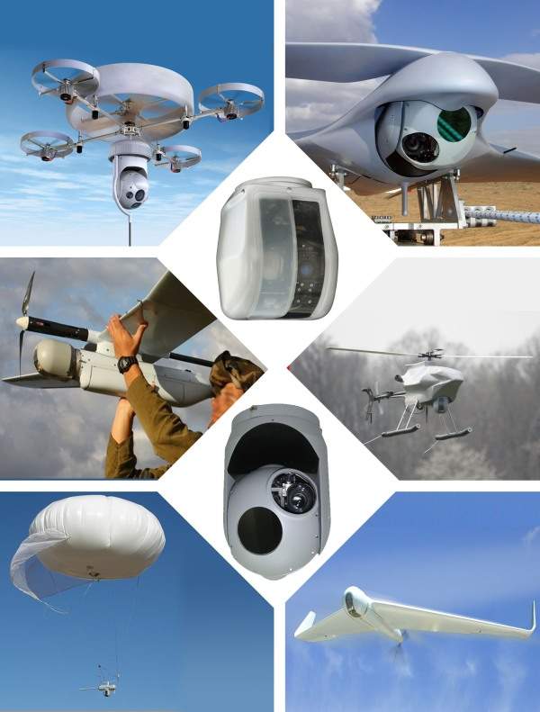- High-performance stabilized observation payloads used for day and night surveillance on board: UAVs, small UAVs, helicopters, VTOLs, light aircraft, aerostats, maritime patrol boats and ground vehicles