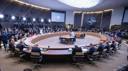 Nato concluded two days of talks between foreign minsters on 4 April 2024, the 75th anniversary of the alliance, welcoming Ukrainian Foreign Minister Dmytro Kuleba to the proceedings at Nato-Headquarters in Haren, Belgium, weeks after Sweden joined as the thirty-second member of the alliance on 7 March.