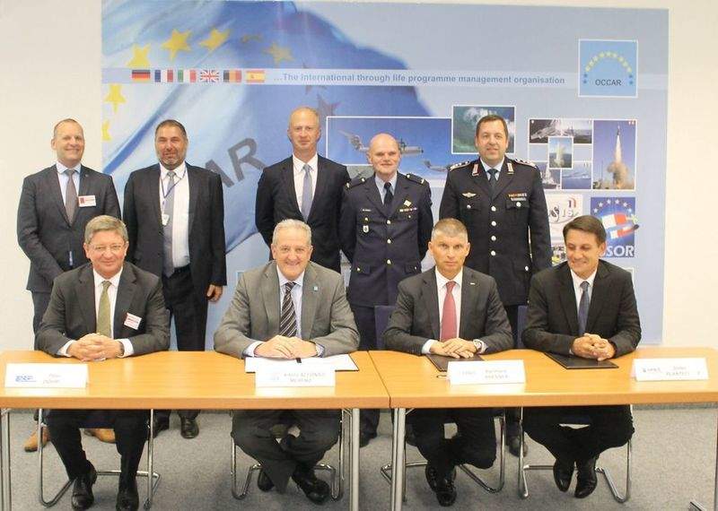 Image: Officials during the contract amendment signed at the OCCAR headquarters in Bonn, Germany. Photo: courtesy of Airbus SAS.