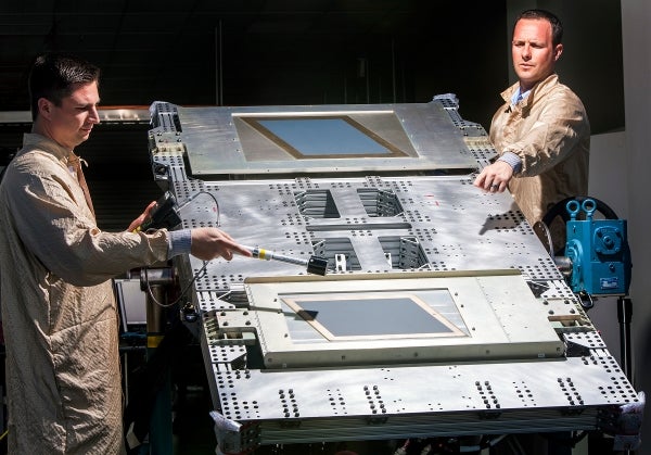 Image: Northrop engineers measuring RF power levels of the transmit array of the new antenna prior to its demonstration. Photo: courtesy of Northrop Grumman.