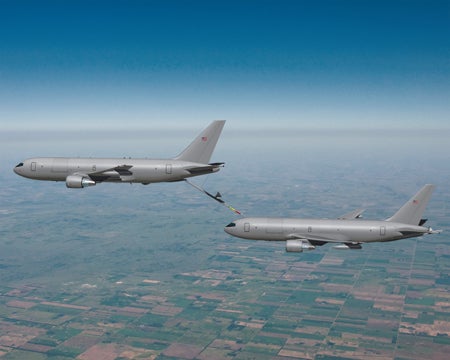 Image: Boeing KC-46 tanker is capable of serving as either a tanker or a receiver. Photo: courtesy of Boeing.